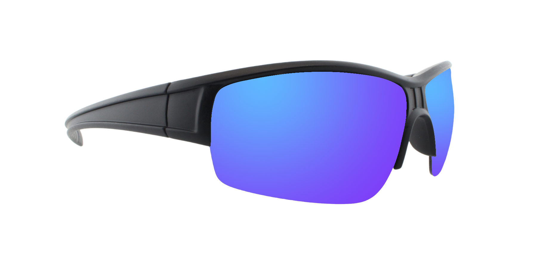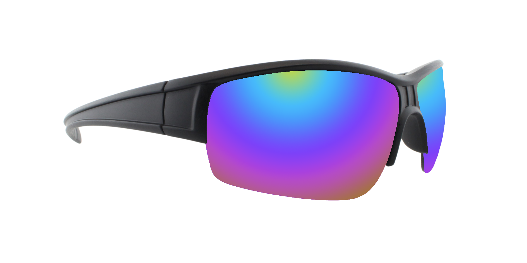 • Colors: Black Matte Frames with Dark Smoked, Blue Mirror, Red Mirror, Silver Mirror, and Rainbow Mirror Lenses