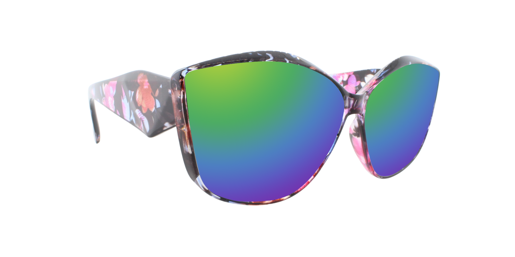 • Colors: Dark Purple Demi Polished (Blue Mirror), Pink Demi Polished (Pink Mirror), Tortoise Polished (Dark Brown), Black Demi Polished (Purple Mirror), Floral Pattern Polished (Dark Smoked), Floral Pattern Polished (Rainbow Mirror)